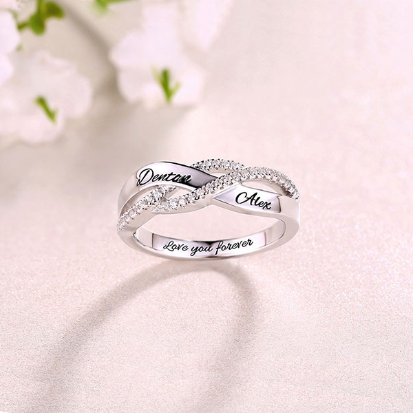 Give her a gift that she will cherish forever. The CZ ring is so shimmering and elegant that catches everyone's eyes. Engraving some special names or characters on both sides and inside the ring. For those who love customized jewelry, this ring is the perfect option. Whether a promise between friends or a promise in a romantic relationship, this ring is great for showing a special bond and devotion.
